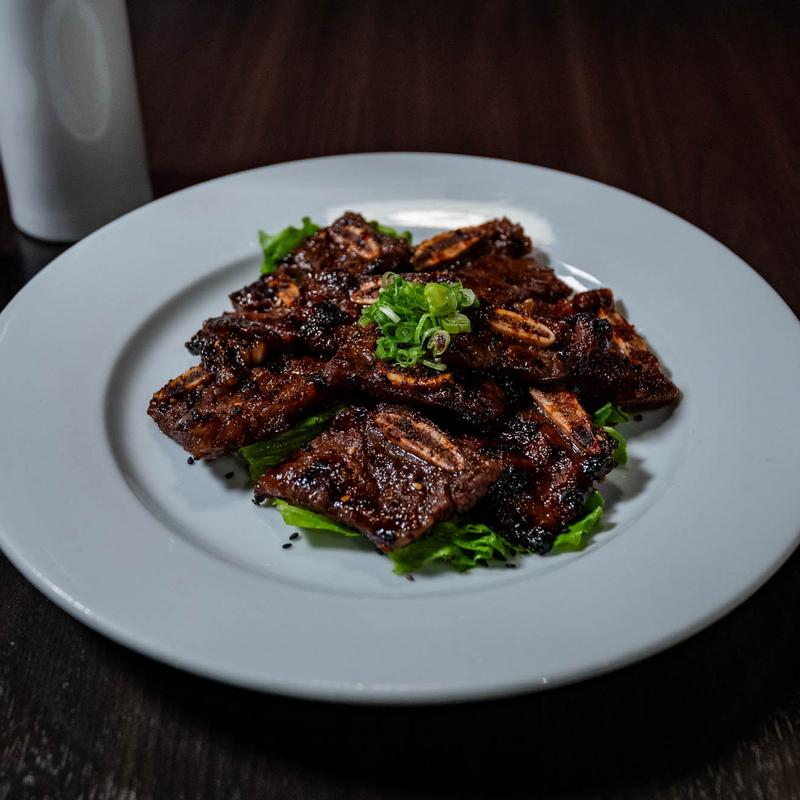 Short ribs marinated and grilled with our house barbecue sauce