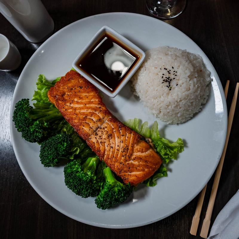 Fresh salmon broiled in our homemade teriyaki sauce and steam broccoli